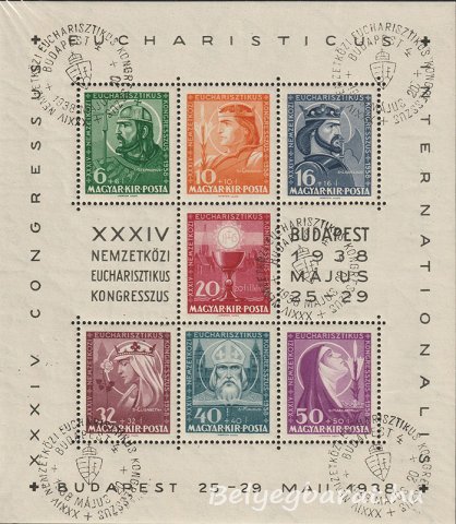 A Budapesten 1938. május 25-29. közt megtartott rendezvény alkalmából 100%-os felárral 7 címletet magábanfoglaló emlékbélyegblokkot bocsátott forgalomba a posta. A kibocsátást a Központi Sajtóvállalat már 1935. év folyamán kezdeményezte és a posta előterjesztésére a minisztertanács a javaslatot elfogadta. Az emlékbélyeg tervezésére pályázatot írtak ki, melyre 11 művészt hívtak meg, akik közül kilencen nyújtottak be pályaművet. A bíráló bizottság az 1000 pengős első díjat Márton Lajosnak, a 700 pengős második díjat Fery Antalnak, a 400 pengős harmadik díjat pedig Englerth Emilnek ítélte oda. A rendezőbizottság a kibocsátás előtt 40 000 db emlékbélyegblokk átvételére kötelezte magát, a példányszám 100 000-rő 250 000-re történő felemelése után azonban az átvételt megtagadta, ami miatt per is folyamatban volt (103.755 db blokkot megsemmisítettek).