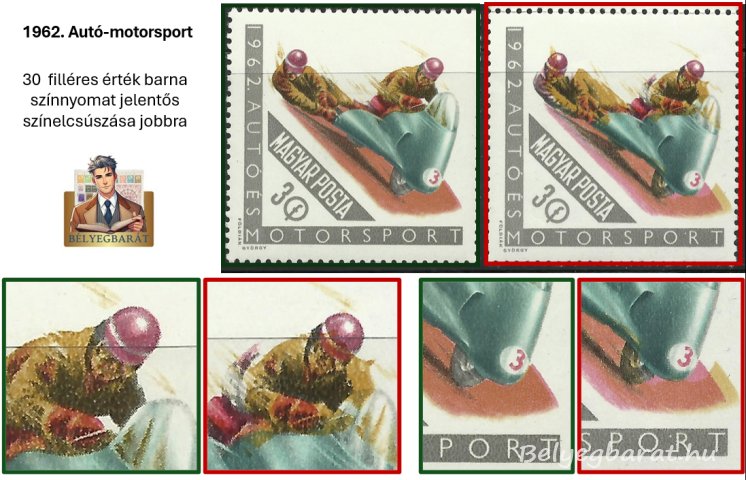 - nagyobb (3–4 mm) színelcsúszások a 30 és 40 filléres értéknél