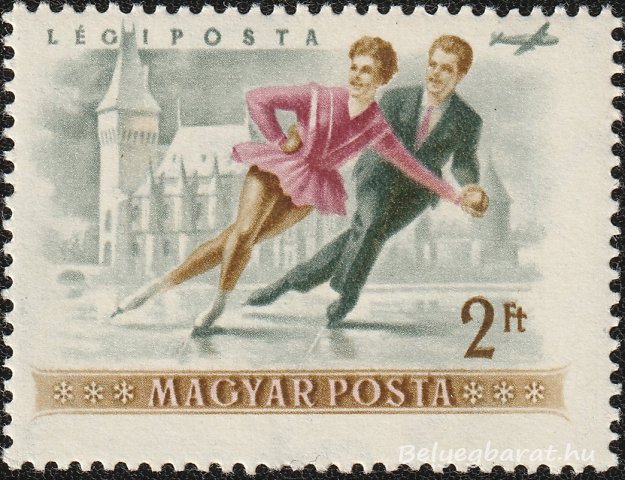 A posta téli sportjeleneteket ábrázoló 8 címletből álló alkalmi légiposta-bélyegsorozatot adott ki, melynek 1,20 és 2 forintos címletét a Budapesten megrendezett Műkorcsolya és Jégtánc Európa-bajnokság napján, 1955. január 27-én bocsátotta forgalomba. A sorozat 1955-ben „Az év legszebb bélyege” címet nyerte el.