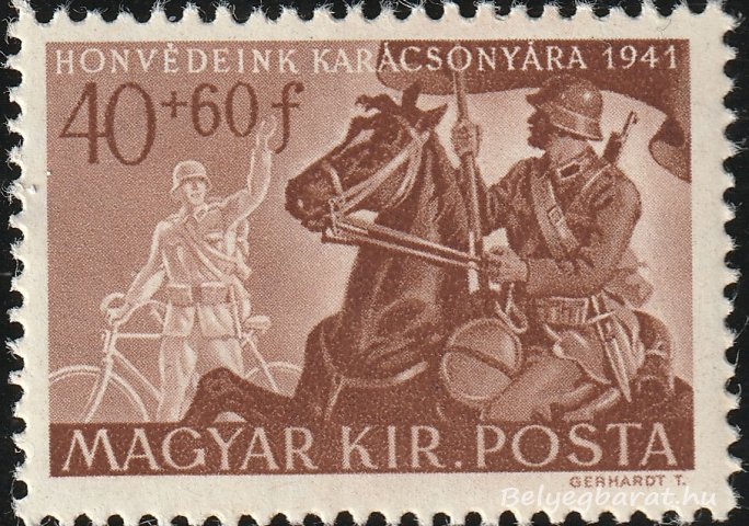 A posta a II. világháborúban harcoló honvédek karácsonyi ajándékozása céljából, 1,60 pengő felárral öt címletből álló bélyegsorozatot bocsátott ki 1941. december 1-jén. A jelentős felár miatt a bélyegeket főként gyűjtők vásárolták, postai forgalomba kevesebb került, de nem számítanak ritkaságnak a bélyegzett bélyegek, illetve postai küldemények sem.