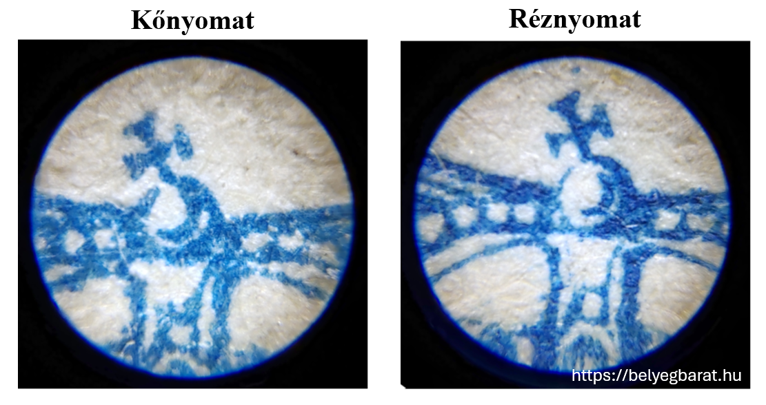A különbségek jól láthatóak az 1871-es kiadás 10 krajcáros értékeit megfigyelve és ugyanazon részleteinek nagyított képein is.