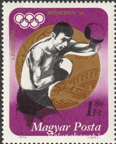 Az 1972-es müncheni olimpián a magyar sportolók aranyéremből visszafogottabban teljesítettek, mint 4 évvel korábban, azonban így is 6 arany- 🥇, 13 ezüst- 🥈 és 16 bronzérmet 🥉 szereztek, így az éremtáblázat 8. helyén zártak, 35 éremnél többet is egyszer sikerült csak szerezni, olimpiai pontok számában is a 3. legeredményesebb olimpia volt. A posta ismét bélyegsorozat kiadásával és blokkal tisztelgett a sportolók előtt, de ez a kiadás talán még furcsábban sikerült, mint 4 évvel korábban. Természetesen ez ismét nem a tervezőn Dudás Lászlón múlott. A probléma az, hogy 8 évvel korábban az összes érmet szerző sportolóról megemlékezett a posta, a mexikói olimpia után csak a az aranyérmesekről, ezúttal viszont 5 aranyérmet szerző és két ezüstérmet szerző sportoló került a bélyegekre. A többi ezüsérmes (például a labdarúgó, vagy vízilabda csapat) és a bronzérmesek nem kerültek bélyegre. Furcsa és igazságtalan választás volt melynek az oka számomra nem ismert.