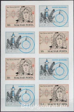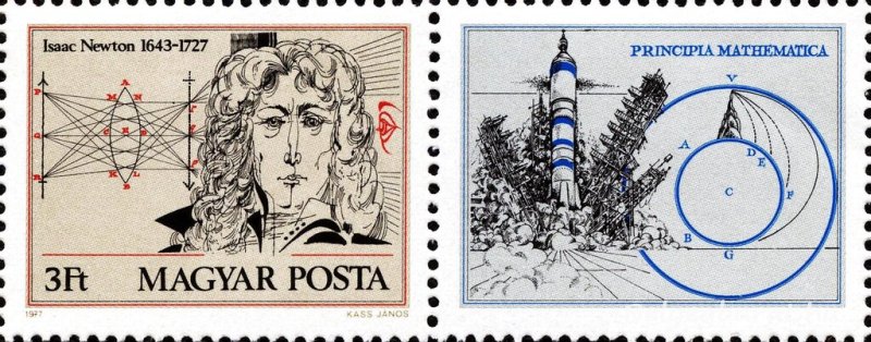 A magyar posta 1977-ben szelvényes bélyeget adott ki Newton halálának 250. évfordulójára. A Kass János tervei alapján 4 bélyeget és 4 szelvényt tartalmazó kisívben kerültek forgalomba 813.600 fogazott és 40.000 vágott példányban.