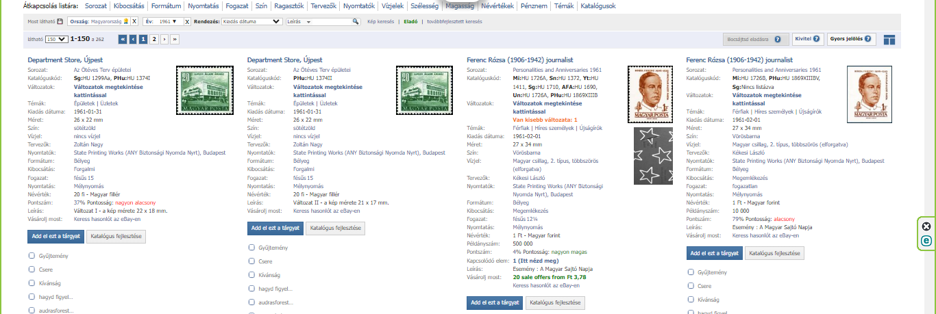 Személyes gyüjteményemet is itt kezelem, így legalább tudom milyen bélyegeim vannak. A többlet példányokat fel lehet kínálni cserére, vagy akár el is lehet adni. Más gyűjtők cserelistáin is könnyedén lehet böngészni, számtalan bélyeghez jutottom már így cserével!