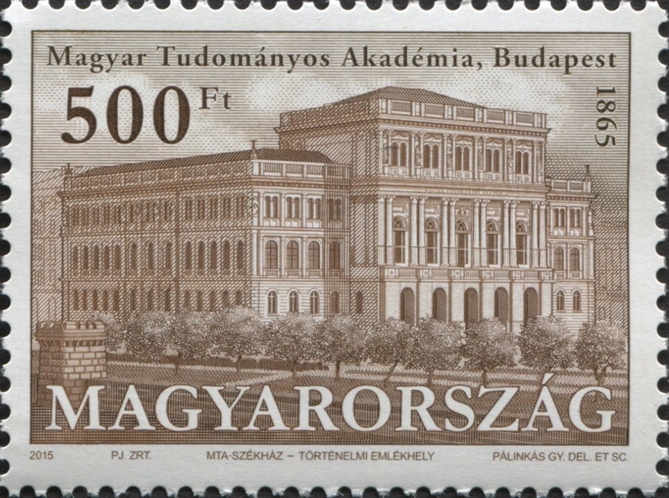 2015. 150 éves a Magyar Tudományos Akadémia székháza. Eddig az utolsó réznyomtatással készült magyar bélyeg |