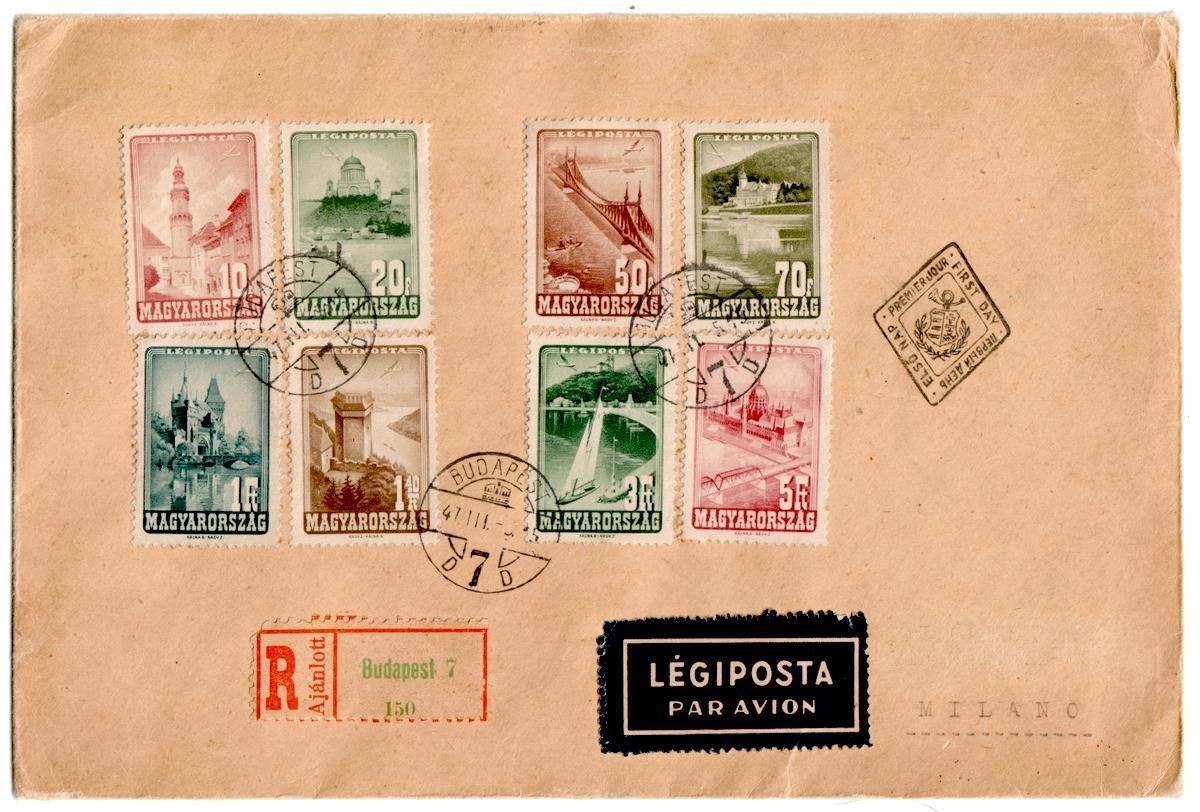 Az első FDC-t Magyarországon 1947-ben adták ki a Repülő (IV) sorozathoz. Eleinte csak a bélyegzés utalt az első napi jellegre, egy teljesen közönséges borítékra ragasztották fel az új bélyegeket és látták el elsőnapi bélyegzéssel.